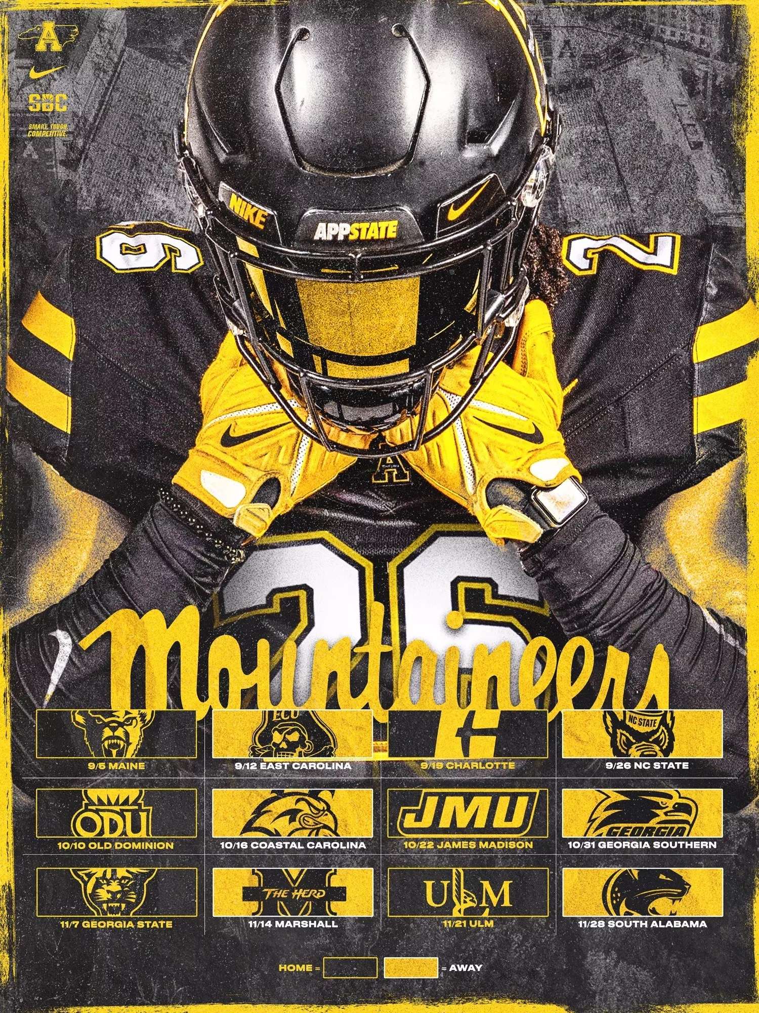 Old Dominion, James Madison and Georgia State are the East Division teams that will appear in Kidd Brewer Stadium, after Maine and Charlotte visit the High Country in September. The Mountaineers’ road schedule features in-state visits to East Carolina and NC State before they travel to East Division foes Coastal Carolina, Georgia Southern and Marshall.