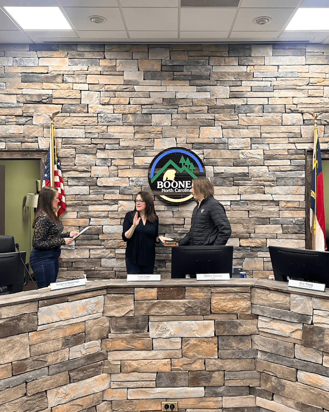 During the February 25, 2026 meeting of the Boone Town Council, Anne Pruitt was officially sworn in to serve as a member of the Boone Town Council. Anne fills the vacant seat previously held by Mayor Dalton George, who was elected Mayor of the Town of Boone.