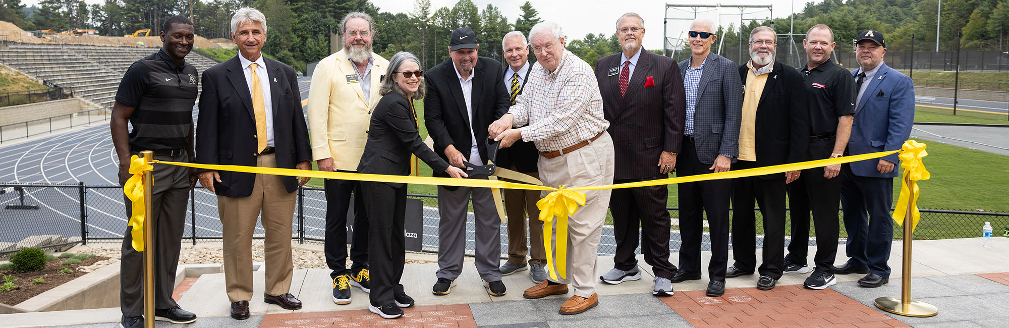 On a sunny afternoon, against the backdrop of the Randy Marion Track and Field Facility at App State’s Appalachian 105 Sports Complex in Boone, university leaders recognized Weaver and his wife, Cynthia Weaver ’75 ’77, for all they have done for App State student-athletes and the High Country community. The event was attended by several current and former App State student-athletes, as well as App State coaches and friends of the Weaver family.
