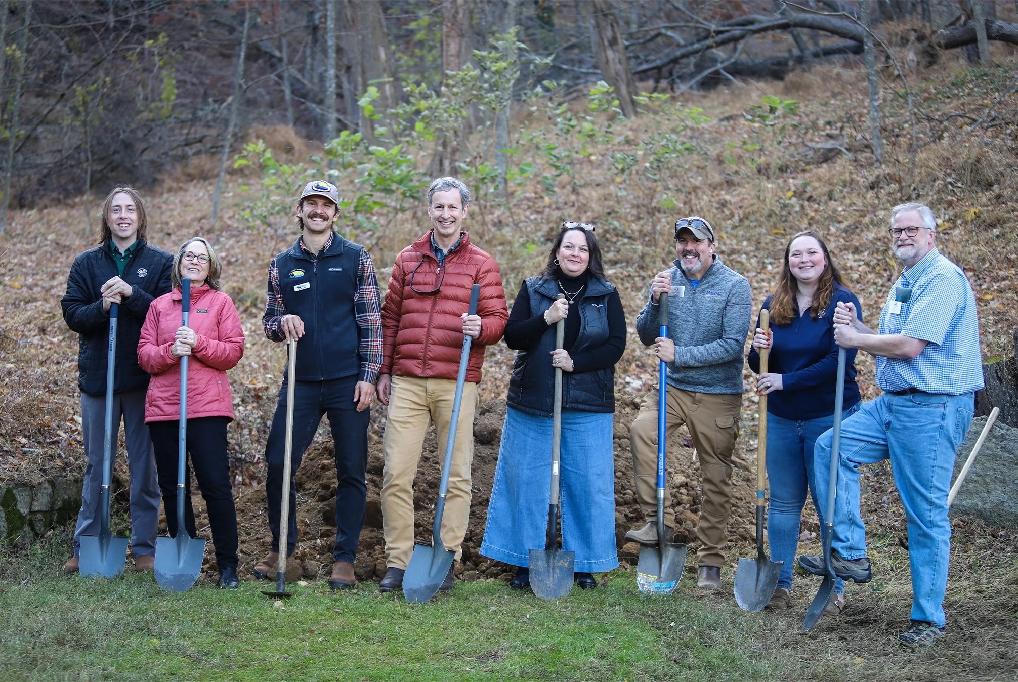 The symbolic groundbreaking included Boone Mayor Pro Tem Dalton George, Blue Ridge Conservancy Board Chair Kadie Dean, NPST Coordinator Jordan Sellers, Blue Ridge Conservancy Executive Director David Ray, Downtown Boone Development Association President Kendra Sink, Boone Mayor Tim Futrelle, Town of Boone Grants Coordinator Laney Wise, and Boone Town Council Member Dr. Eric Plaag.