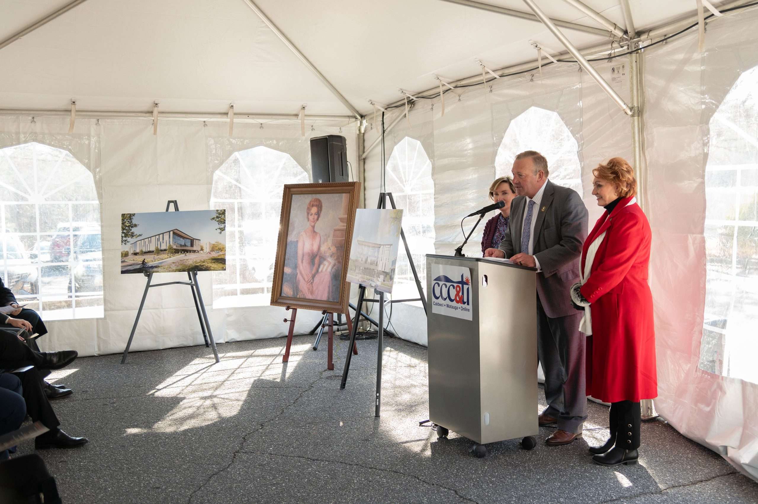 Several members of the Broyhill family were in attendance for the event. Mr. Hunt Broyhill offered remarks on behalf of the family. “Since the inception of Caldwell Community College and Technical Institute just over 60 years ago, the Broyhill family has shared a special partnership with the college and its generations of leaders. This has never been more true than today,” said Broyhill. “The primary reason we have remained dedicated to the college is that it has played a role as a catalyst of economic empowerment for thousands of individuals and families in this community and beyond. No other institution has done more to train and equip our friends and neighbors for professional success,” said Broyhill. “It is with great pride that we accept the invitation of Dr. Poarch and the Board of Trustees to honor the memory of our mother and her service to the community by naming this new building for her. This is truly a great day to celebrate.”