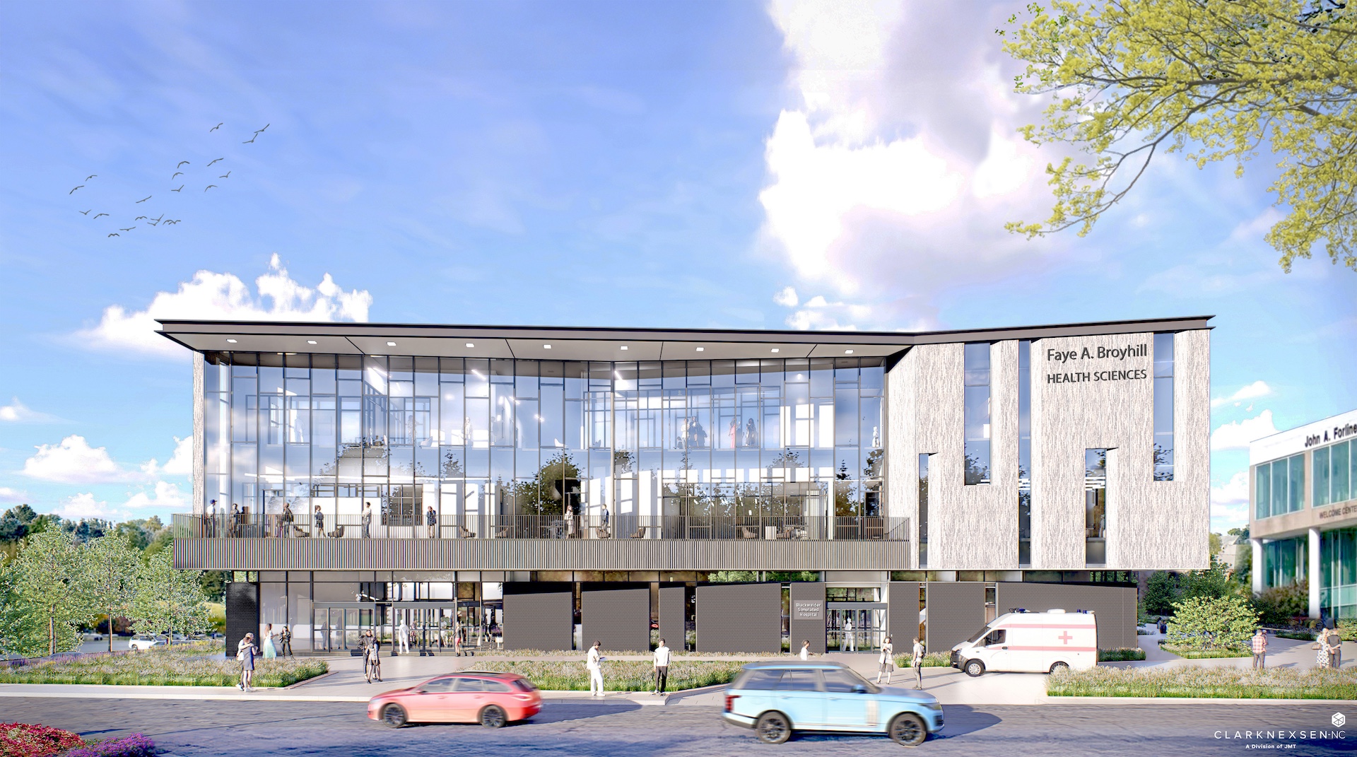 Pictured, is an architectural rendering of the new Faye A. Broyhill Health Sciences Building which will be added to CCC&TI’s Caldwell Campus in Hudson. Construction on the project kicked off with a special groundbreaking ceremony on Tuesday, Dec. 16. The facility will allow all 24 of CCC&TI’s Caldwell Campus health sciences programs to be collocated in one state-of-art teaching and learning space that will help meet the community’s need for well-trained, qualified healthcare professionals.