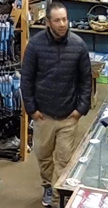 On 1/18, an unidentified male entered Regear Outdoors, located at 967 Rivers St. After some time spent inside the business, the male purchased a pair of pants that displayed an altered tag, to register a lower price at checkout. Prior to purchasing the pants, the suspect removed the lower priced tag from another pair of pants and then displayed it on a higher priced pair of pants, as if this price was correct.