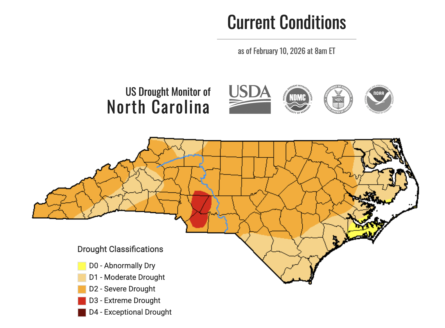 In the latest drought update for North Carolina, severe drought conditions continue to grip much of the state, with Extreme Drought emerging in three counties and Severe Drought affecting 72 counties.