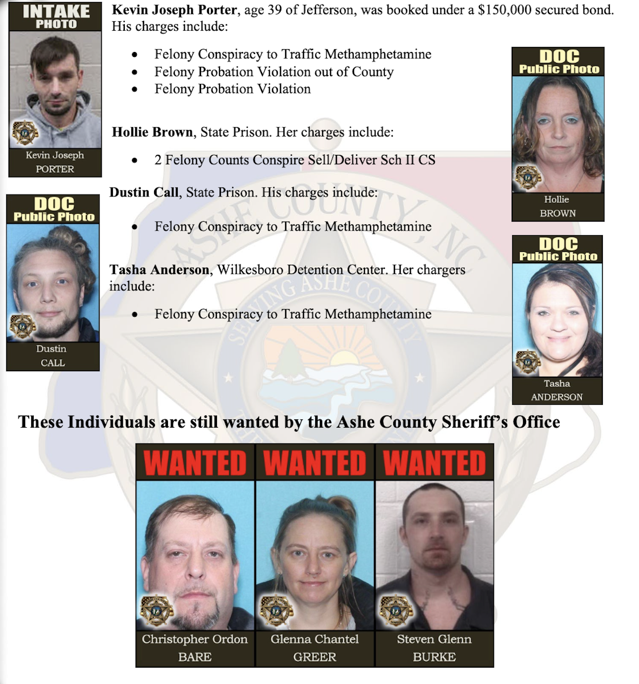 Three individuals are still wanted by the Ashe County Sheriff's Office in connection with Operation Crystal Ball: