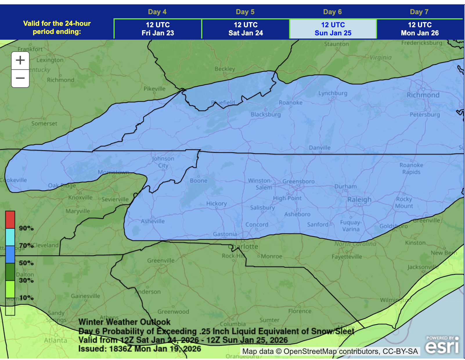 - Potential for snow or wintry mix near NC/VA border