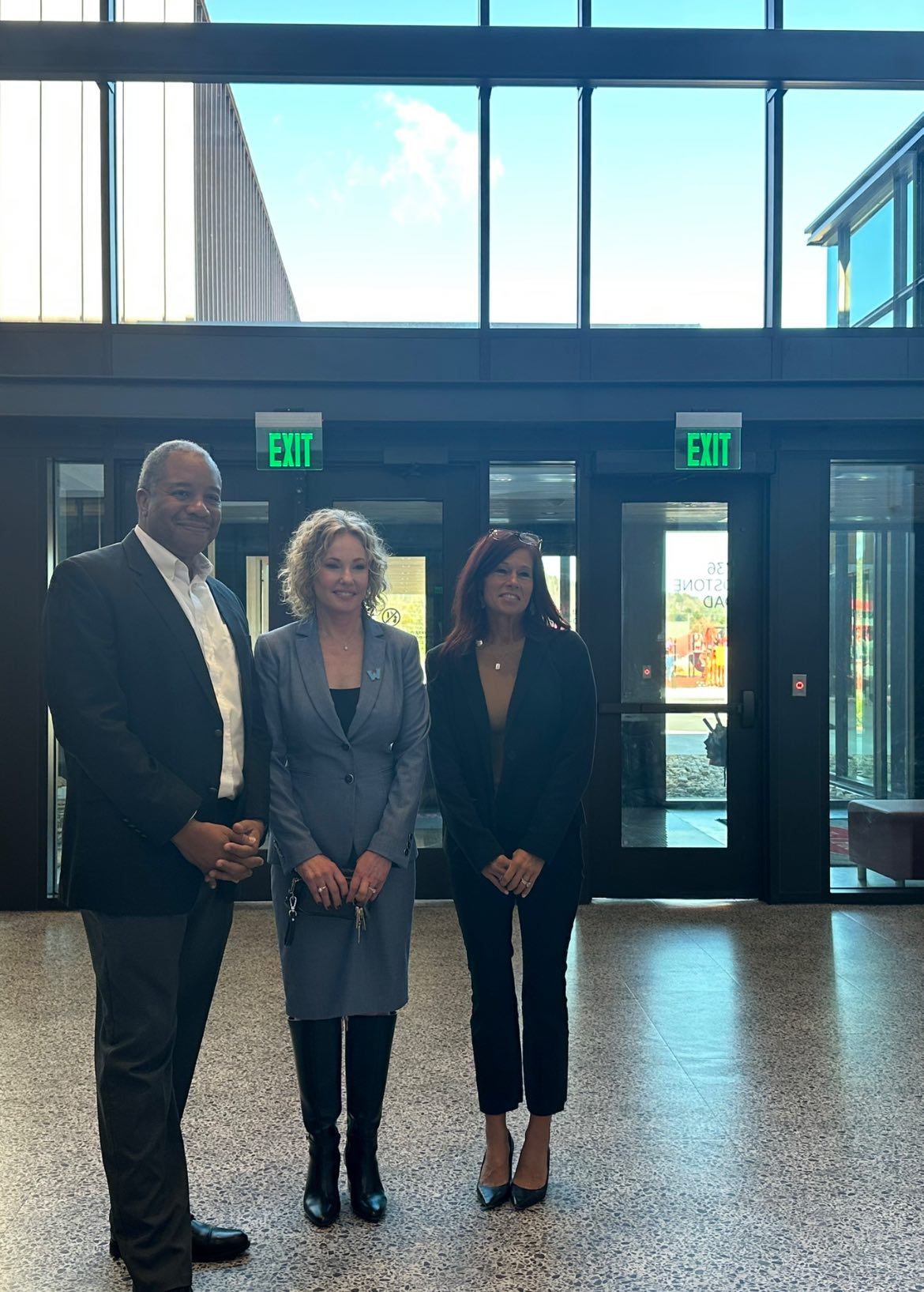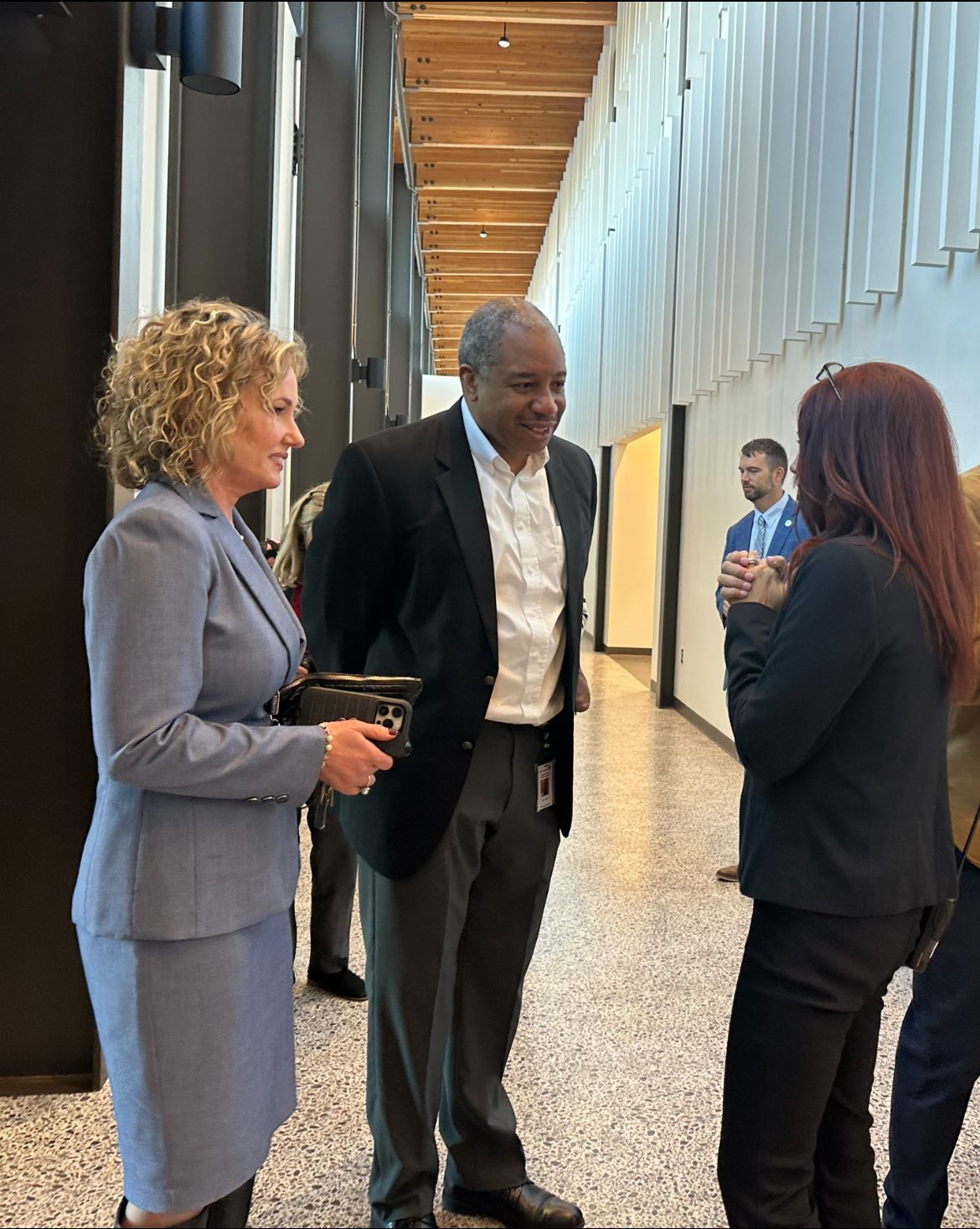 The visit continued at Valle Crucis School, where principal Dr. Bonnie Smith welcomed the team for a tour of the new facility on its opening day. Mr. Green and his team had the opportunity to meet teachers, speak with students, and experience firsthand the enthusiasm surrounding the school’s opening. The day wrapped up with a visit to the campus of The Valle Crucis Conference Center and Holy Cross Episcopal Church, which served as the temporary home for K–5 students since last year’s hurricane.