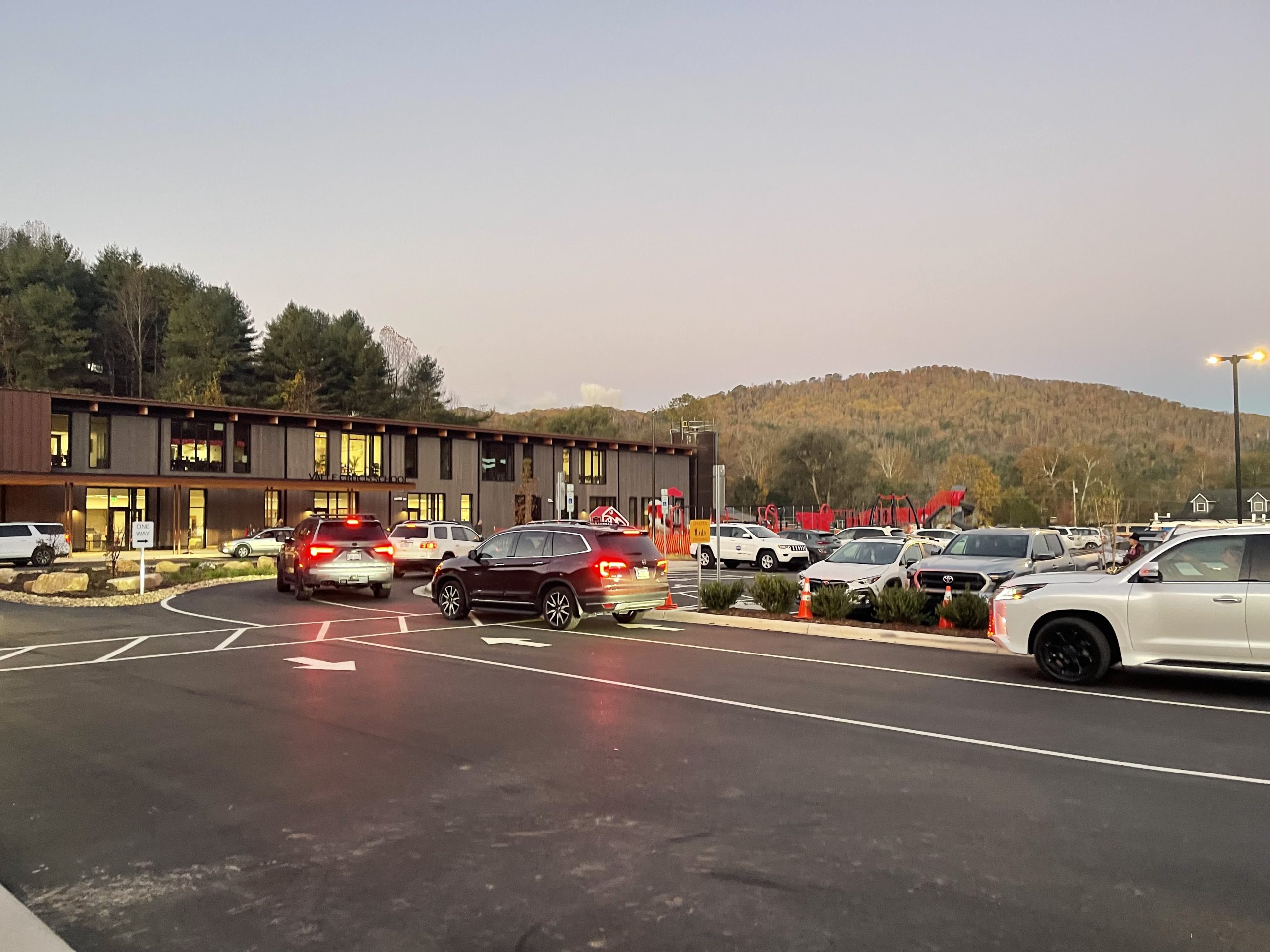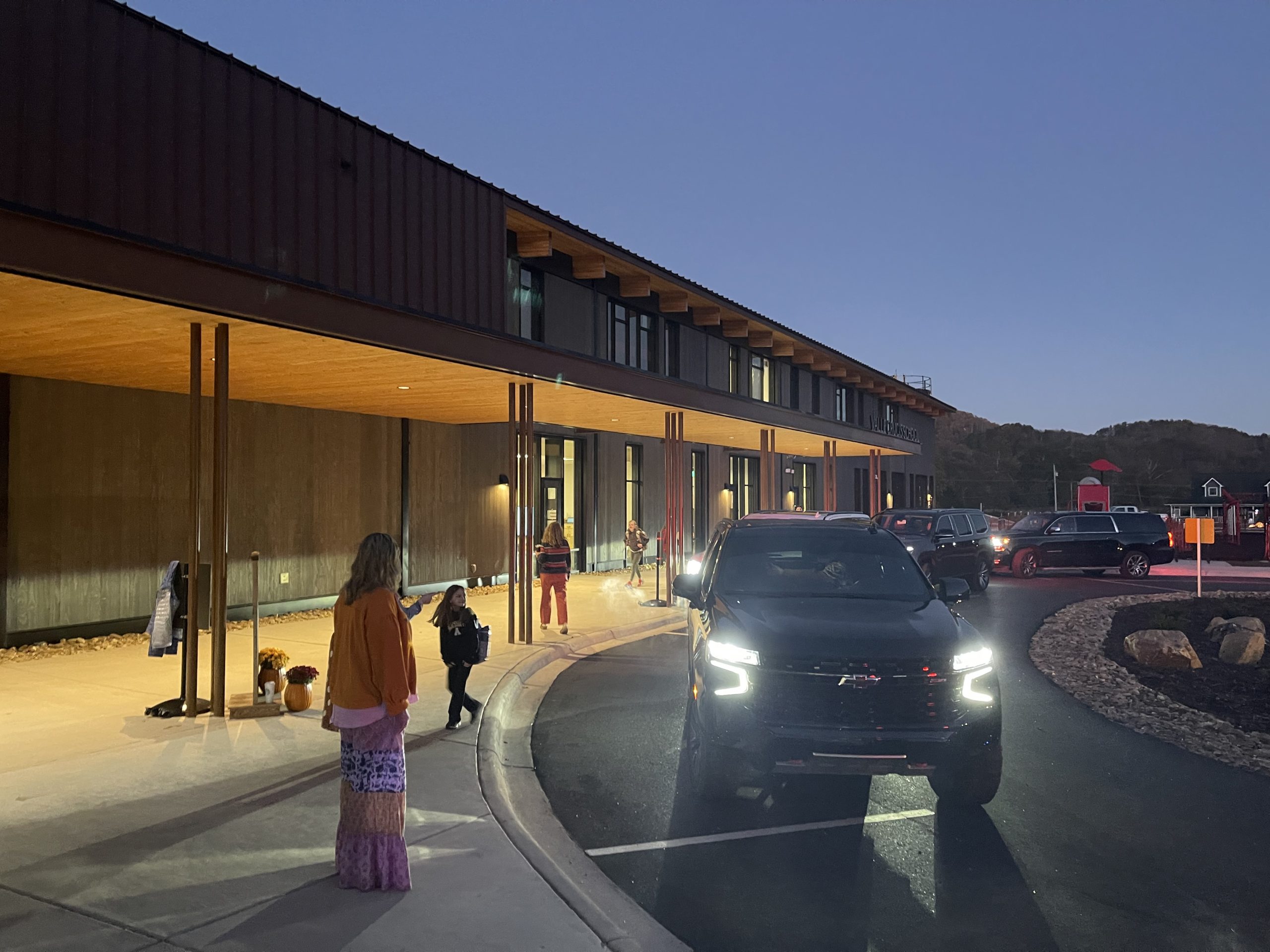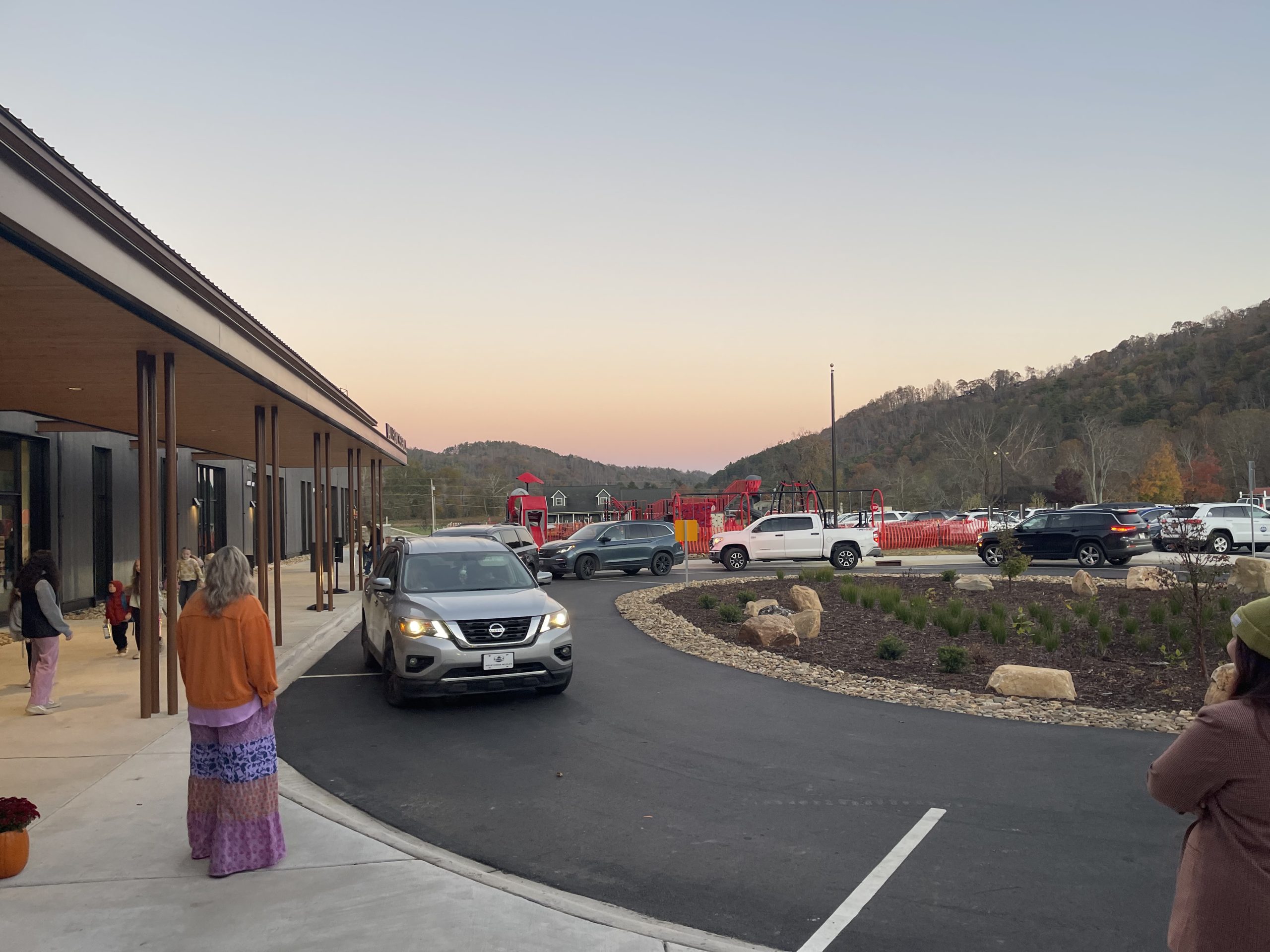 Some of the very first car rider drop-offs on the first day at the new Valle Crucis School.