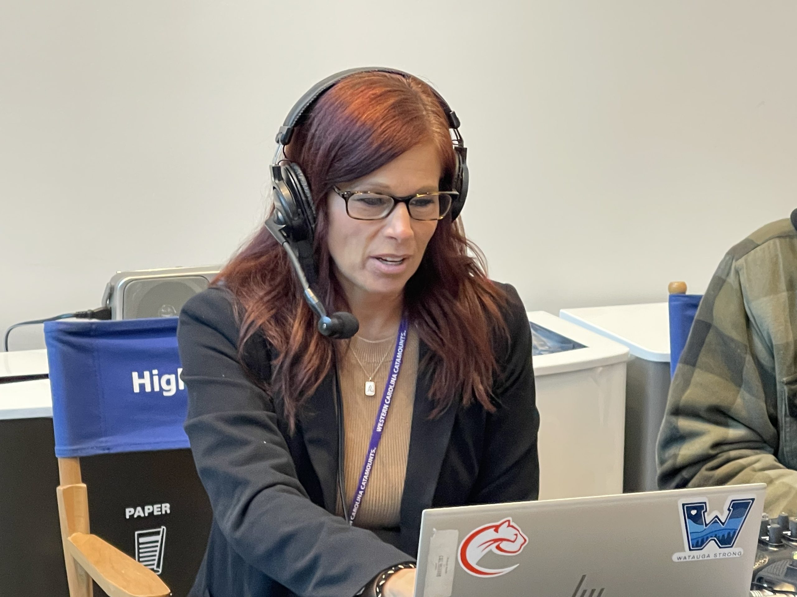 Principal Dr. Bonnie Smith with her morning announcements on the first day of class in the brand-new school building! Her message was broadcast live on WATA radio and captured on video by WataugaOnline.