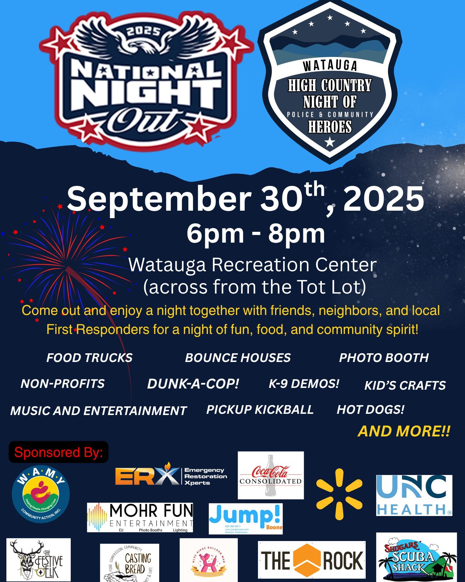 UPDATE – The National Night Out event that was to take place tonight (9/30) at the Watauga County Recreation Center has been canceled. No information on any plans to reschedule.